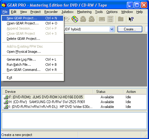 - At this point your VIDEO_TS will be loaded and you are ready to convert the VIDEO_TS to a DDP. Scroll down your "Mastering" Menu selection to "Convert GEAR Project to DDP Image". (NOTE: if you preferred, and you had a DLT Tape Drive installed, you could "Write GEAR Project to Tape" instead.)