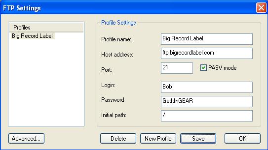 If you want to transfer the DDP Image over the Internet, you can save your FTP settings by pressing the "FTP Settings" button in the first window above. A dialog box will appear as shown below.