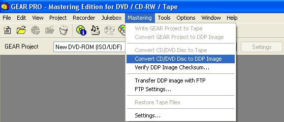 - To transfer a CD or DVD to a mastering facility or replicator, simply run the "Convert CD / DVD Disc to DDP Image" command from the "Mastering" menu.