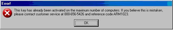 You will need a manual activation. If you have previously activated GEAR and are re-installing using your original serial number, you may receive a error message similar to this: